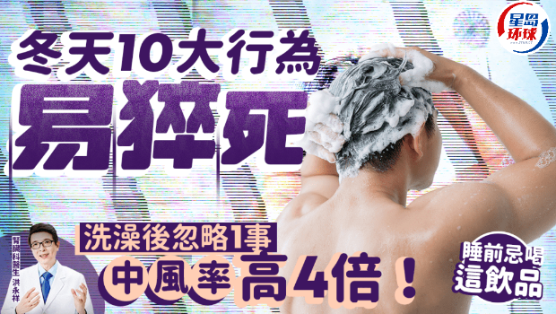 【猝死/心血管疾病】一些習以為常的行為,到了冬天竟成為致命的導火線?有醫生提醒,天氣寒冷時,有10種行為容易增加猝死風險。若洗澡前后忽略1件事,突發中風風險恐高4倍!長者或長期病患者要多加留意,注意保暖及身體狀況,避開高風險行為。