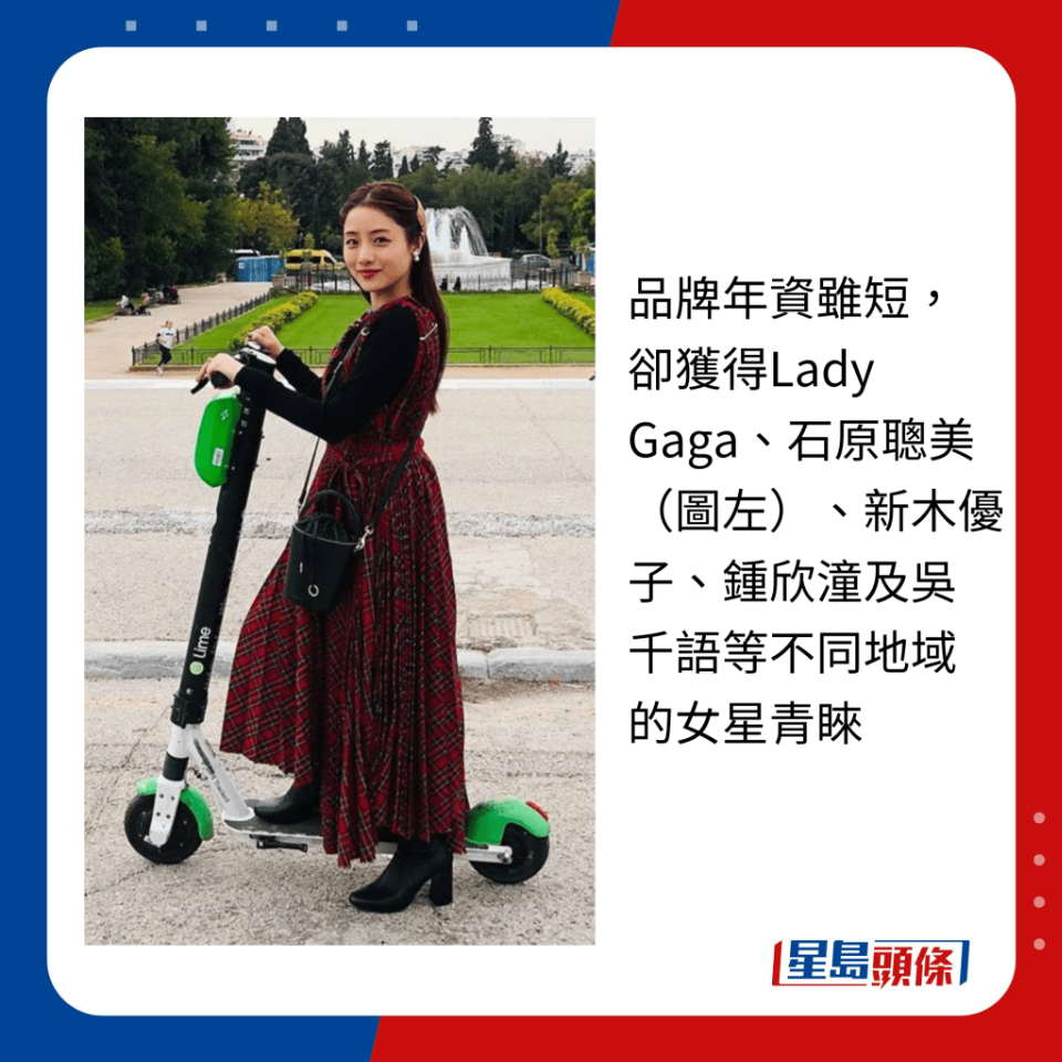 品牌年資雖短,卻獲得Lady Gaga、石原聰美(圖左)、新木優子、鐘欣潼及吳千語等不同地域的女星青睞