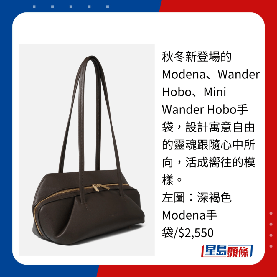 秋冬新登場的Modena、Wander Hobo、Mini Wander Hobo手袋,設計寓意自由的靈魂跟隨心中所向,活成向往的模樣。