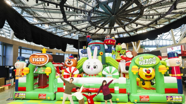 先到室內2樓中庭暢玩一體式巨型充氣彈床城堡“圣誕繽紛大冒險”,這里齊集了經典彈跳游樂設施,更有7米高禮物工廠滑梯圣誕等小朋友去挑戰!還有巨型圣誕襪恐龍Drago、小熊Bell波波池、獨木橋、搖擺鐘等都換上紅彤彤的圣誕look,充滿節日氣息。