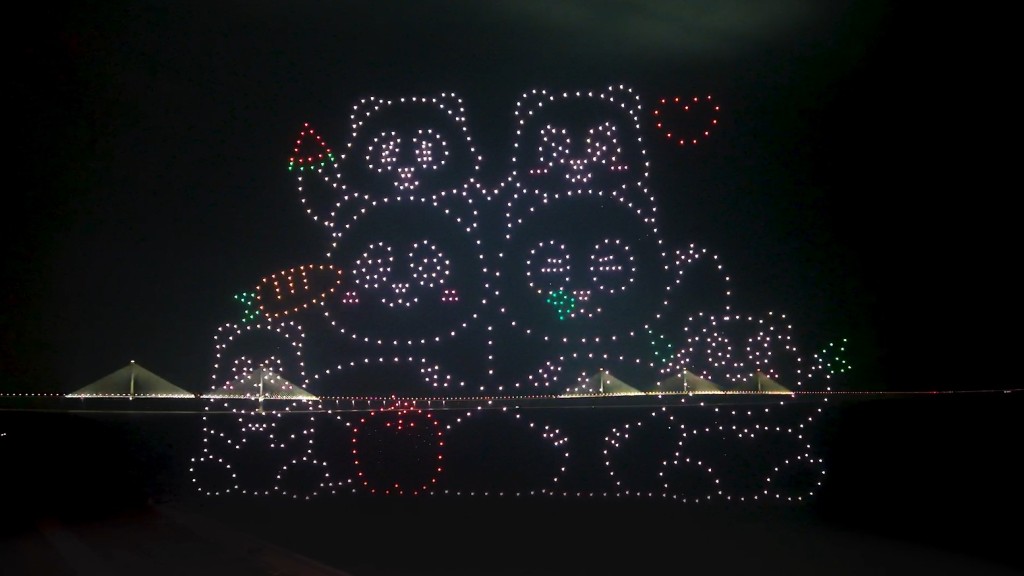 第二幕:熊貓為煙火無人機匯演揭開序幕。