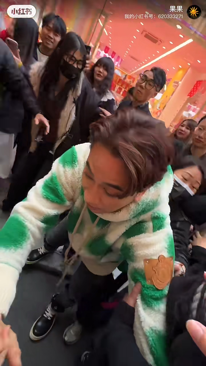 另有女狂迷在小紅書貼片,表示:“吳好ong!現場太擠有人跌倒了”,結束活動后,吳卓羲離開商場時看到整條街都塞滿粉絲,他都驚呆了,他被保安及工作人員開路離開,期間吳卓羲都有拋出金句“唔好ong”并邊行邊舉起手向粉絲打招呼時,該女狂迷竟一手捉實偶像手仔,更截圖貼在留言區,興奮說:“是我的手抓住了”,有網民笑女狂迷懂得把握時機,“笑死,你也是懂抓住機會的”。