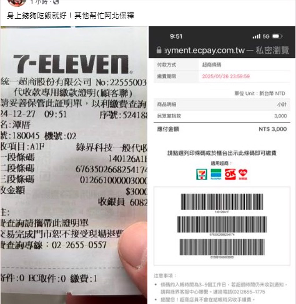 臉書社團“柯文哲阿北粉絲后援會”出現不少小草貼出捐款到民眾黨的明細,要支援交保金。