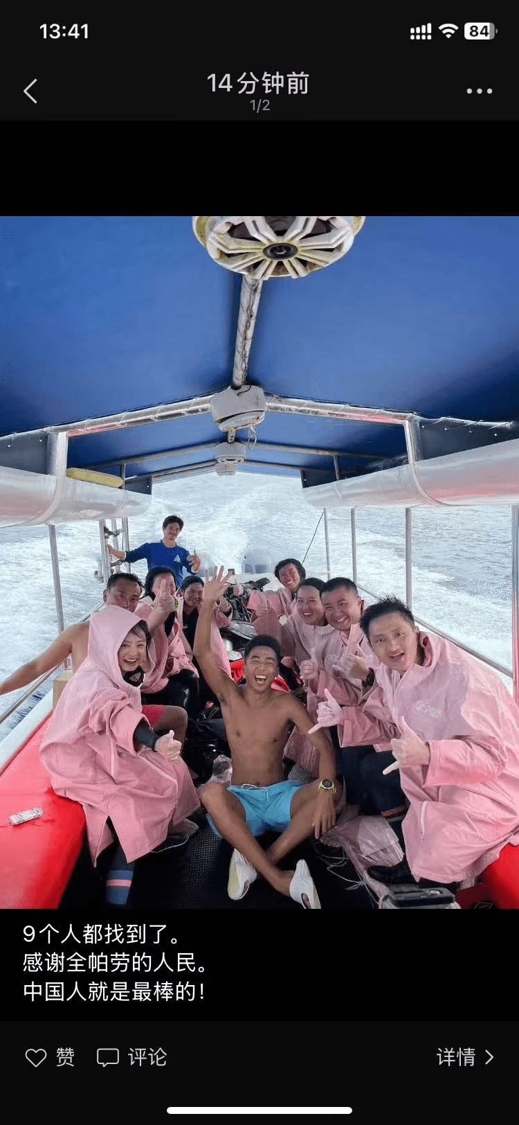 潛水店負責人在朋友圈發照片稱9名中國潛水員全部獲救。