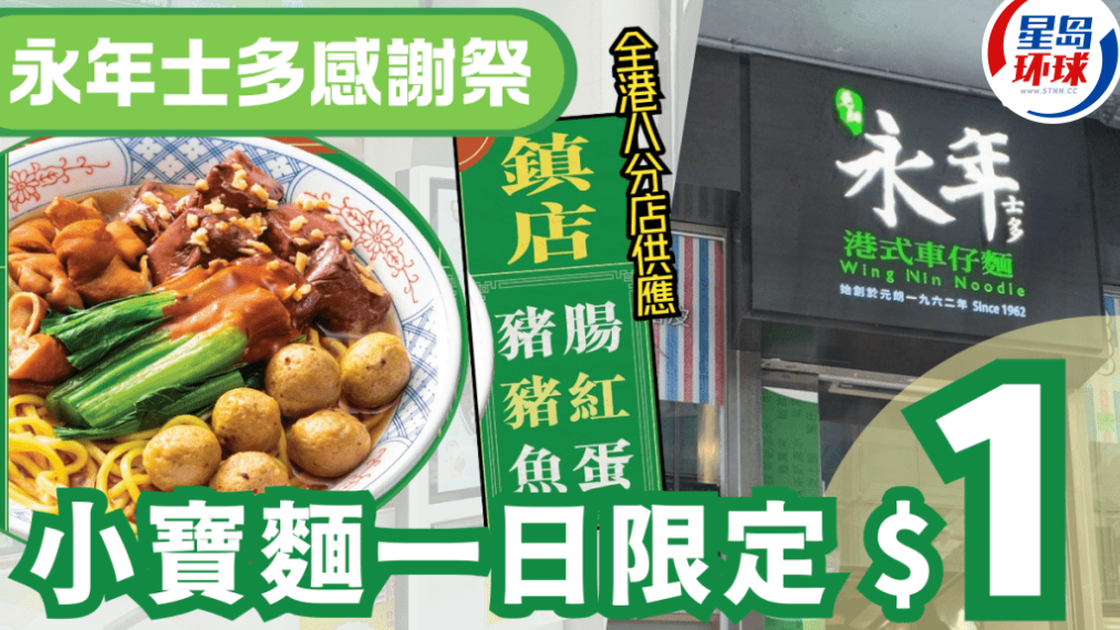 永年士多$1面優惠!以傳承香港車仔面文化聞名的永年士多,今年再度延續年度傳統,推出跨年感謝祭活動,包含豬腸、豬紅及魚蛋的小寶面于指定期間內以震撼價$1發售,即睇優惠詳情!