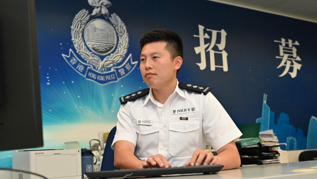 “警隊面臨其中一個挑戰,就是人手不足。去年機緣巧合加入警察招募組,希望為警隊廣納人才,壯大隊伍,為市民提供更專業全面的服務?!备赣H為警務人員的警務處人力資源科總督察陳梓維Jeffrey,大學畢業后加入港鐵工作,一年后決定踏上父親的足印,結果成功投考督察,受訓完畢后擔任軍裝巡邏小隊指揮官,其后在多個警隊部門工作,及至去年加入警察招募組,走進本港各大學進手招募,并走進內地的大學,向香港留學生遞出橄欖枝。Jeffrey感言,警務人員可以接觸不同領域,可從中學習很多知識,讓他獲益良多,未來會全情投入做到最好:“香港警察,使命必達!”