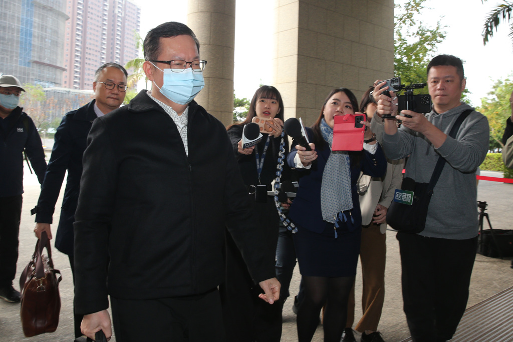 桃園前市長鄭文燦涉嫌在9.12公頃的工五擴大市地重劃案收賄500萬,桃園地檢署依貪污罪嫌起訴求刑12年,鄭文燦30日第2度出庭,在律師陳永來陪同下,提前逾半小時于8點58分步入法院,面對記者提問全程不發一語。