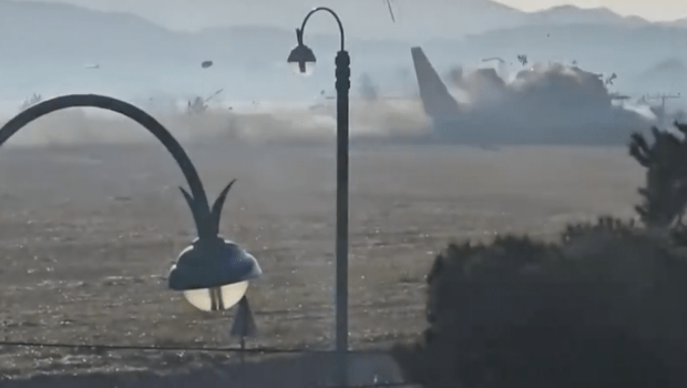 從機場閉路電視可見,飛機降落后一直向前滑行。