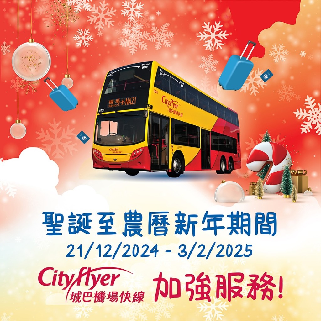 城巴于除夕及新期間將加強口岸及機場路線服務。 城巴
