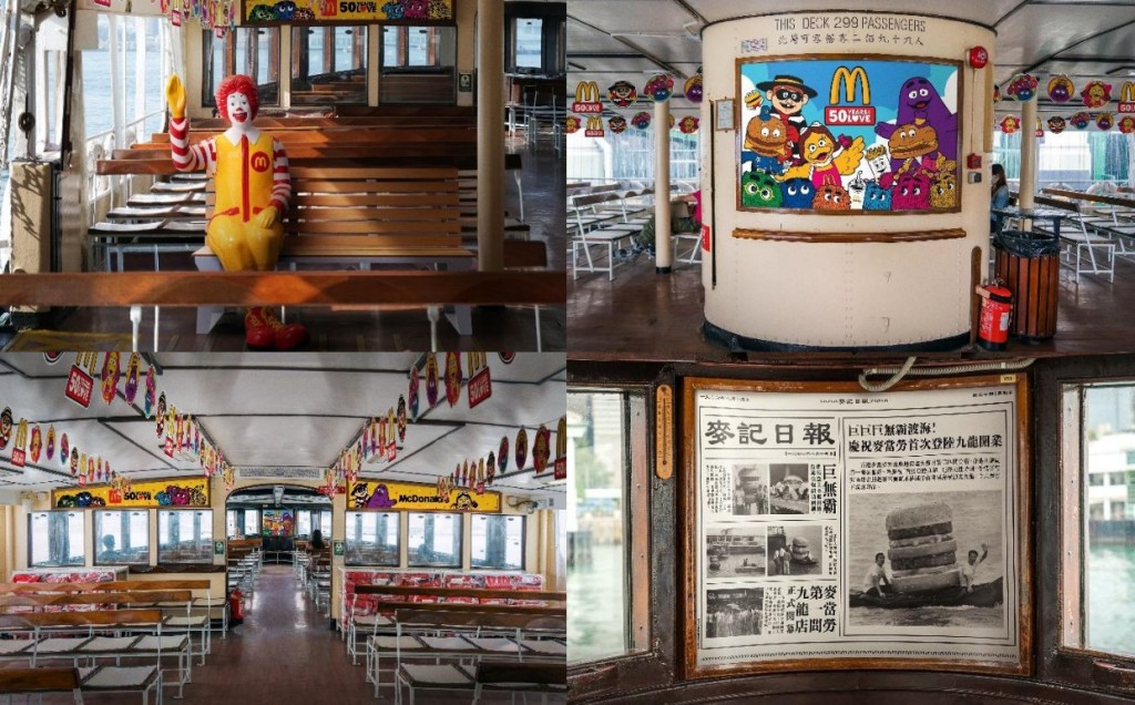 ▲麥當勞主題天星小輪以麥當勞樂園人物為設計主題,由船頂、船身及船內均以麥當勞樂園人物為裝飾主題。麥當勞相片