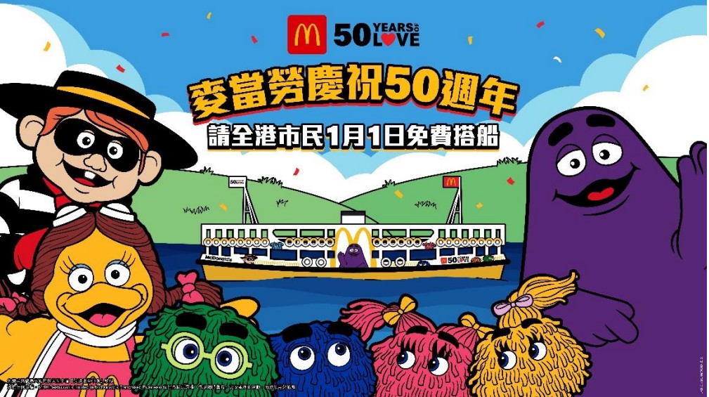 麥當勞為慶祝50周年元旦日請全港市民免費搭天星小輪。