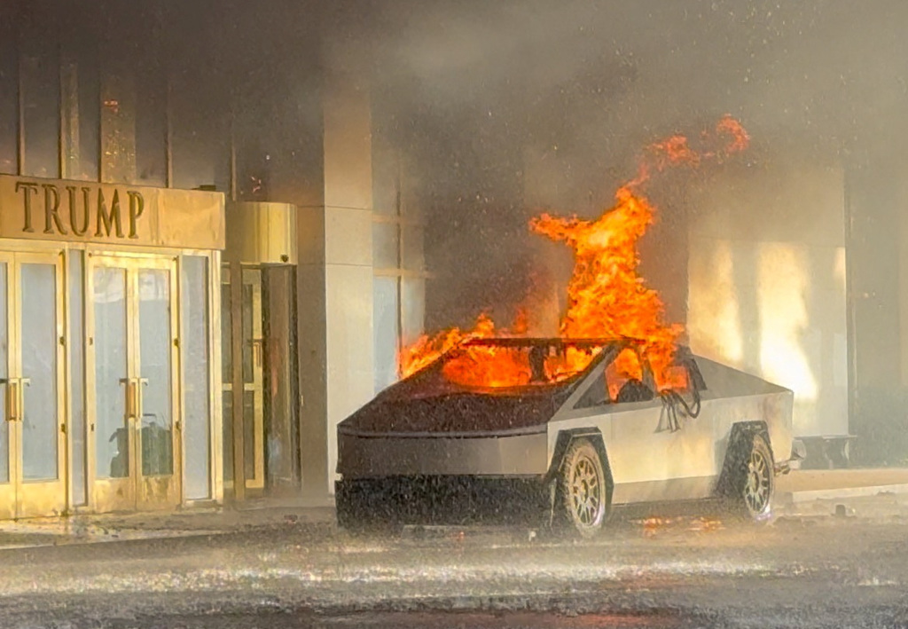 賭城特朗普飯店外爆炸起火的特斯拉賽博皮卡起火爆炸。