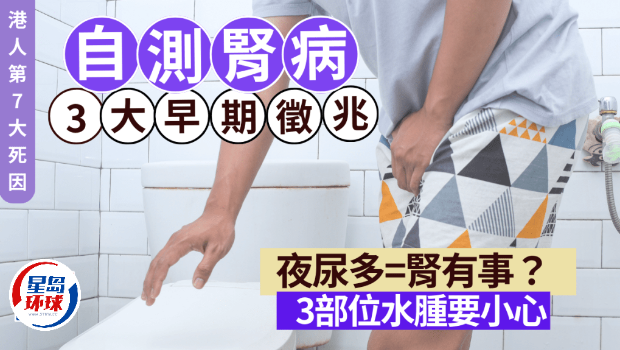 【腎病癥狀】腎病是香港第7大致命疾病。夜尿多,可能是腎臟出問題?有醫生教分辨腎病早期3大征兆,并指出若身體3個部位水腫,也有機會是腎病警號!到底有何方法判斷?