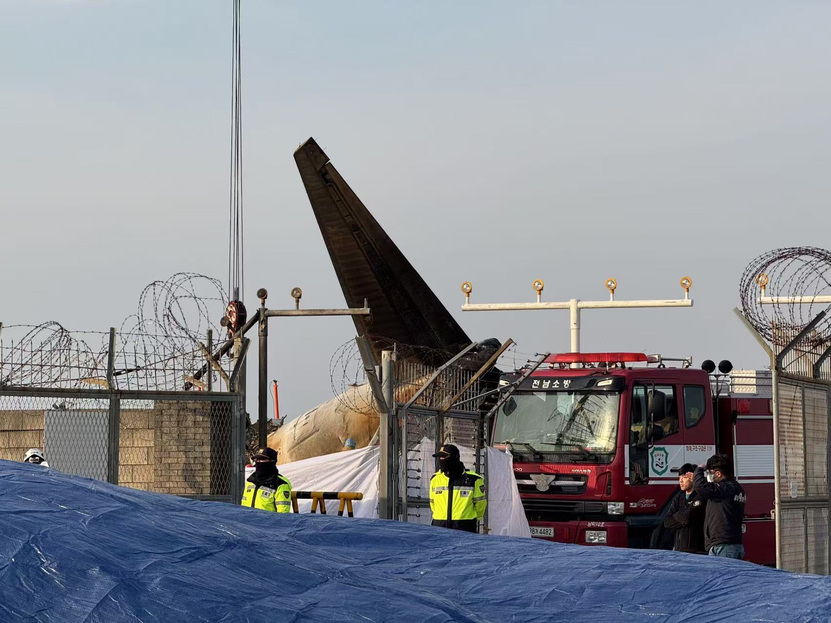 目前韓國與美國組成的事故原因調查小組,正使用重型設備檢查機尾殘骸周圍區域,以及數十公尺外客機撞上的“左右定位臺”(localizer)墜毀現場,以厘清事故原因。