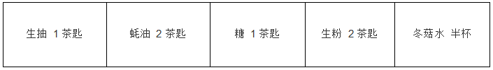 蒸冬菇流出汁液,與調味料拌成醬汁。