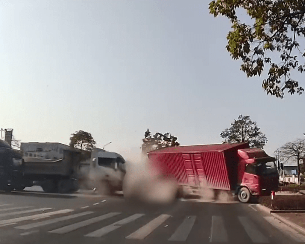 綜合內媒報道,事故發生3日上午9時40分左右,當時一輛比亞迪疑似失控,高速沖過紅燈直沖十字路口,撞上一輛正常行駛的貨柜車尾部。從閉路電視畫面可見,貨柜車的車身尾部被撞飛后,翻側馬路上,肇事的比亞迪則瞬間爆成碎片,汽車零件散落一地,難以辨識出原樣。