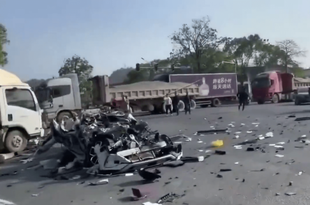 廣東河源市昨(3)日發生一宗致命車禍,一輛白色比亞迪(BYD)高速沖紅燈后,與一輛正常行駛的貨柜車相撞,導致比亞迪嚴重受損瞬間粉碎式解體,貨柜車翻側在旁。比亞迪駕駛者當場身亡,貨柜車內2人受傷,無生命危險,事故經過仍在調查中。