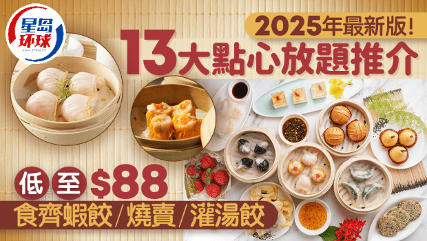 與親朋好友聚餐時,點心放題已成為不少人首選,皆因一個價錢便能享受多款中式點心,讓人感到物超所值。 近年來,許多酒店和餐廳相繼推出任食點心的優惠,其中一些套餐更提供無限量的米芝蓮級的點心,或同時享受火鍋涮肥牛的樂趣?!缎菎u》記者為大家整合了香港13間酒樓、酒店及餐廳的點心放題優惠,低至$88的價錢便可以一次過享用蝦餃、燒賣、灌湯餃等經典點心、中西式甜品及各式煎炸小食,即看下文了解!
