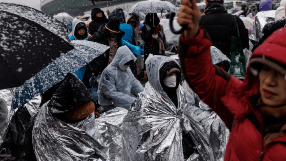 ▲大批民眾冒風雪集會抗議尹錫悅拒捕。路透社