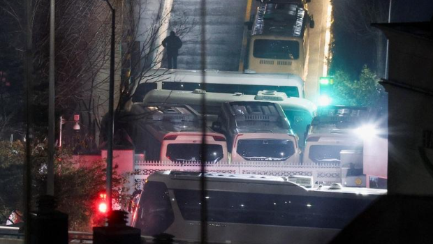 圖為尹錫悅官邸外停滿了巴士以阻擋逮捕人員進入。路透社
