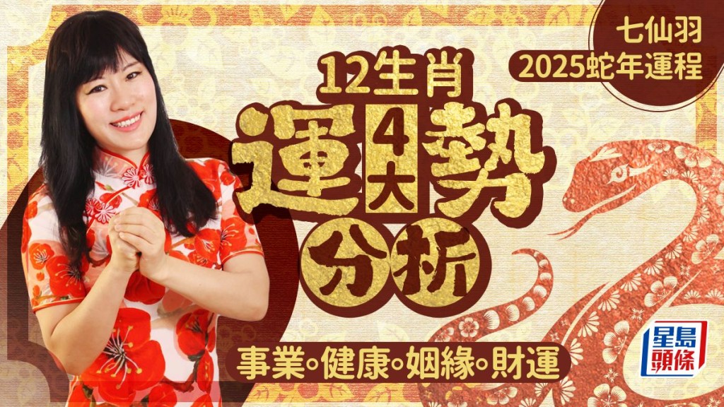 2025年蛇年運程,七仙羽師傅就12生肖,各分為事業運、財運、健康運、愛情姻緣運作出詳盡分析,哪些生肖行好運,強運在什么地方?哪些生肖于蛇年要份外留神,都會一一盡錄,即睇七仙羽12生肖開運貼士。