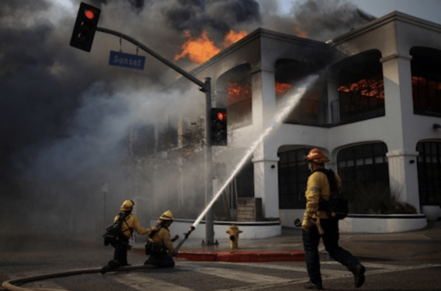 大火席卷了加州帕薩迪納的高級住宅區太平洋帕利塞德近4,856 公頃土地,該處是海濱小鎮圣莫尼卡和馬里布之間一個風景如畫的街區,是許多電影、電視和音樂明星的家鄉,房價中位數為 450 萬美元。不過,縱使住宅如何豪華,也難敵山火的破壞力,多位好萊塢名人,包括杰米李寇蒂斯、曼蒂摩爾、瑪麗亞施萊弗等,與數萬名被迫撤離家園的居民一起出走避難。