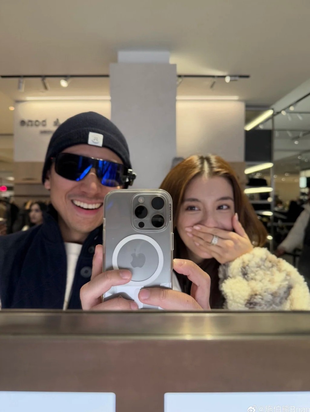最近,有網民在小紅書上分享了一張吳千語與施伯雄夫妻檔在商場購物的自拍照,并留言:“話說,施伯熊的手指是真的短…”照片中可以看到吳千語身穿一件米白混色羊羔毛外套,單手捂著嘴巴甜笑,手上的銀戒指顯得格外搶眼。而身旁的施伯雄則頭戴黑色冷帽及黑色墨鏡,身穿白色上衣及黑色外套,整體造型充滿酷炫感,他雙手捧著手機同老婆玩對鏡自拍并露出燦爛笑容,二人的深厚感情顯而易見。