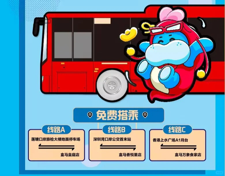 盒馬新增年貨巴士!香港免費直達深圳,3巴士線往返熱門商場