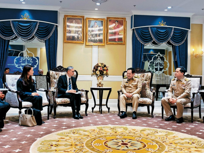 保安局副局長卓孝業與專責小組前晚飛抵曼谷,昨展開首日工作,與不同單位會面。 一行人上午獲泰國總理主持的打擊販運人口活動委員會的成員、泰國司法部部長塔威率領司法部轄下的執法部門首長,包括專責打擊販運人口活動的部門接見,約1小時后離開。 卓孝業在會上反映求助個案的情況,獲對方積極回應。 雙方亦交換情報,塔威表示泰國當局高度重視有關情況,并會盡力協助求助港人盡快安全回港。