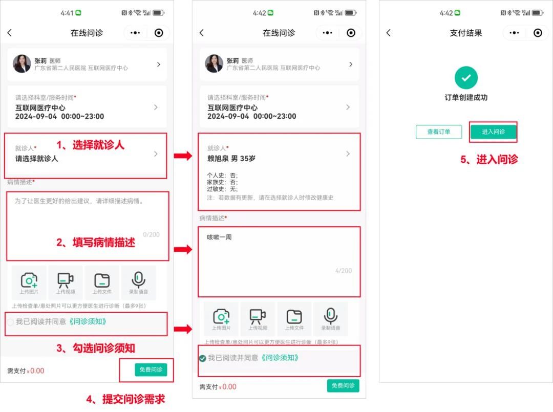 步驟四:提交問診需求選擇醫生進行咨詢后,填寫相關的問診信息并提交問診需求。提交后,選擇進入問診,耐心等待醫生接診。問診過程中,用戶可以發送文字、圖片、語音或視頻與醫生交流。