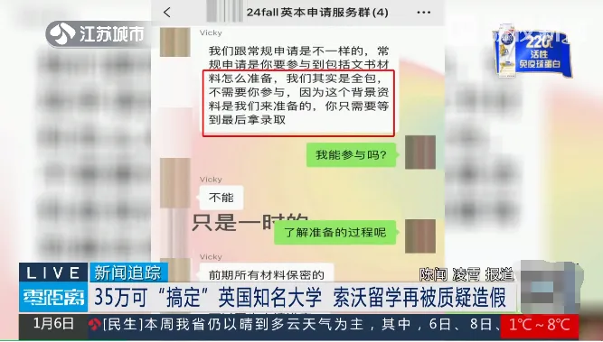 早前,星島教育報道了南京李女士花70萬通過索沃留學中介將女兒送到香港大學讀書,卻在一年后,女兒因入學材料造假被勒令退學。對此,培訓機構只是退還了李女士70萬,對于材料問題,不予處理。