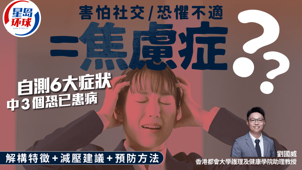 香港人講求效率,生活非常忙碌,承受著不少壓力。 壓力是對挑戰的自然反應,在某些情況下甚至有益,例如在考試或工作中,適當的壓力能提升專注力。 若壓力過大或持續存在,可能會引發精神健康疾病,包括港人常有的焦慮癥。 焦慮癥與暫時性的焦慮或緊張感不同,恐懼或焦慮感更強烈更持久。