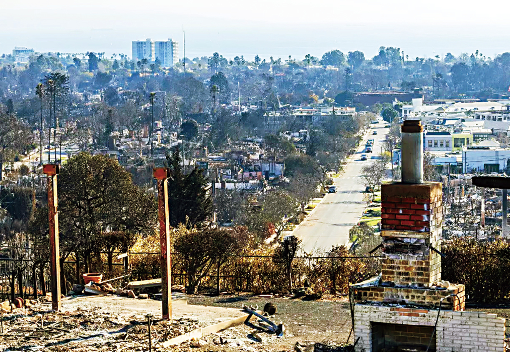 洛杉磯縣帕利塞德山火災區還未整理,圣塔莫尼卡再傳紅旗警報。洛杉磯時報