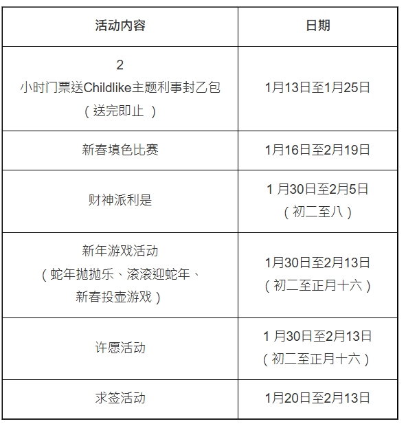 **凡購買門票即可參加上述新春特別活動,無須另外付費