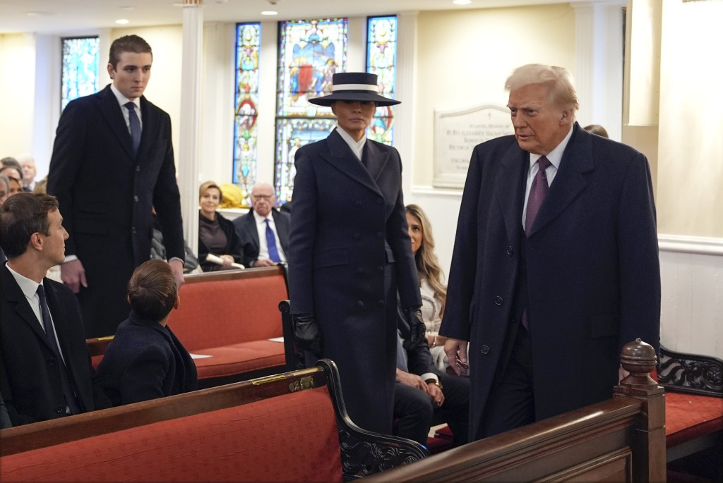 ▲(右起)特朗普、梅拉尼婭及幼子巴倫抵達教堂。 美聯社