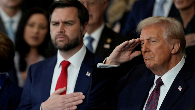 2025年1月20日,美國總統特朗普和副總統萬斯在國會大廈就職典禮上聆聽馬基奧的演唱。