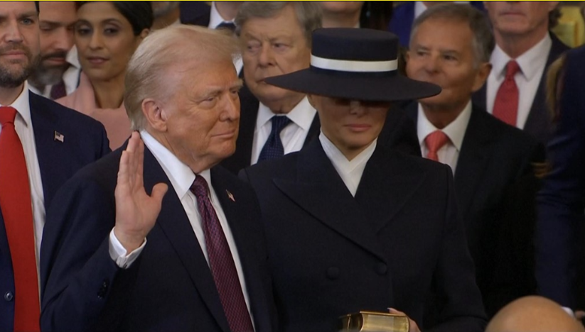 ▲特朗普當地時間1月20日宣誓就職畫面 圖源:外媒