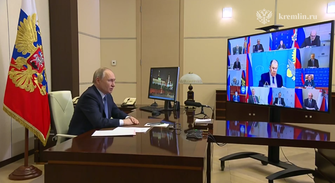 ▲普京20日在會議上講話畫面 圖源:俄新社視頻截圖