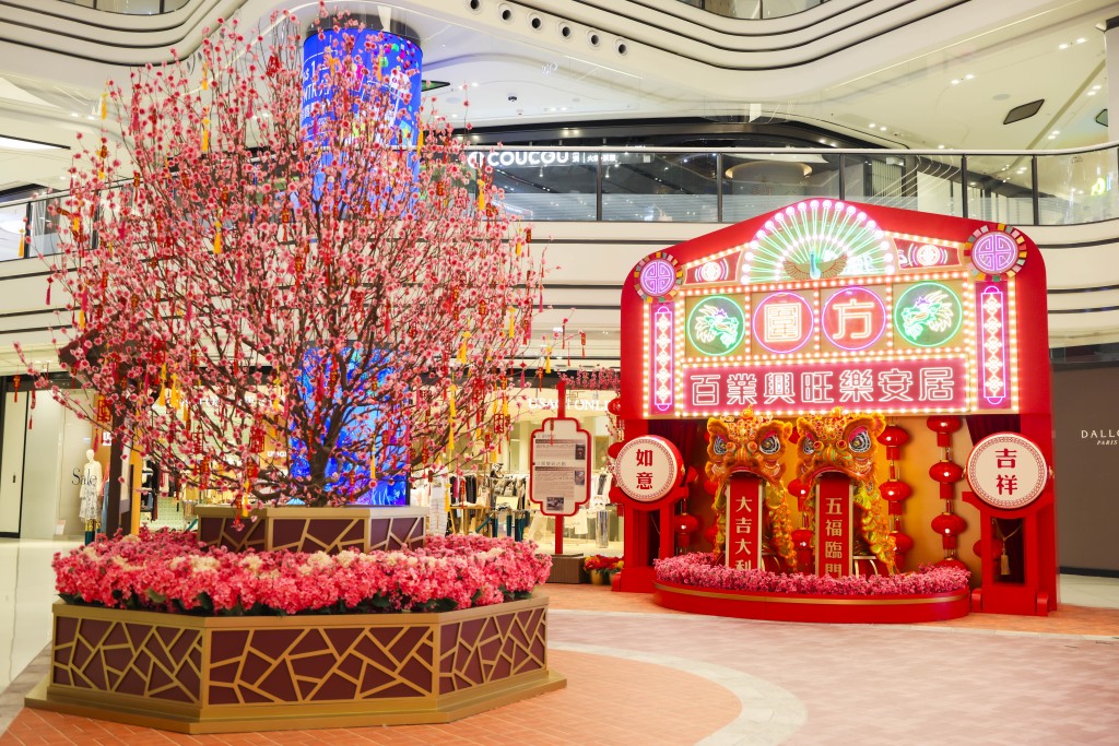 象征吉祥如意的桃花樹設置于中庭,是本次展覽的打卡熱點。 參觀者可透過掃描展區內的 QR Code,回答問題以贏取電子優惠券,并以此為起點,探索沙田大圍的各大景點。