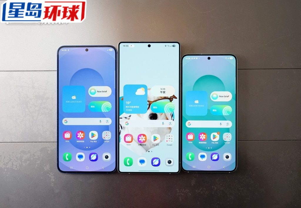 ▲Galaxy S25 Ultra(中)改用6.9吋屏幕及圓角機身,設計風格跟S25(右)及S25+(左)再次統一。
