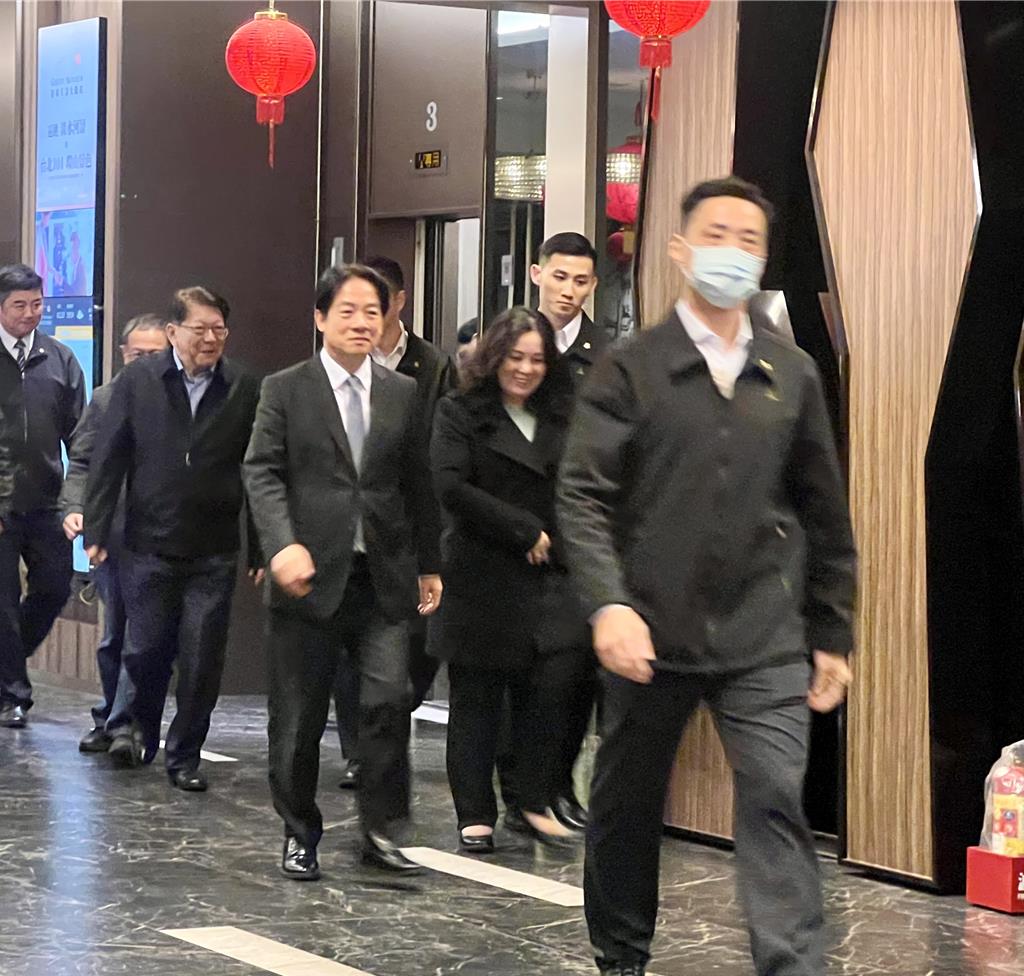 ▲民進黨昨晚尾牙,賴清德氣候變遷會議尾牙會場兩邊跑 。中時