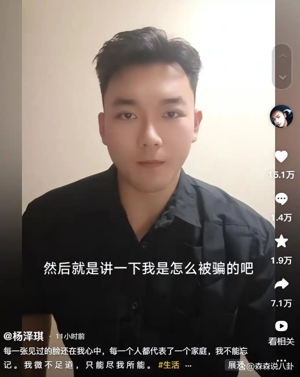 內地男模特兒楊澤琪失聯1個月后在1月17日回國,為了保護更多的人,楊澤琪沒有第一時間公開被騙過程,他在1月23日首度開口講述被騙過程,表示和王星曾在同一個詐騙園區。