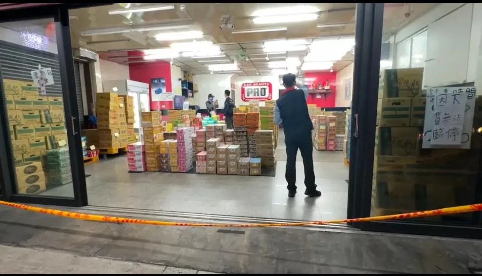 被黑幫闖入開槍殺人的飲料批發店。中天