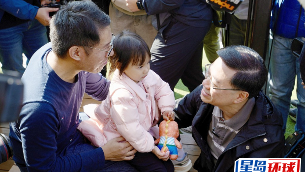 李家超落區訪愛民邨探基層家庭,小一女生大贊特首:好靚仔