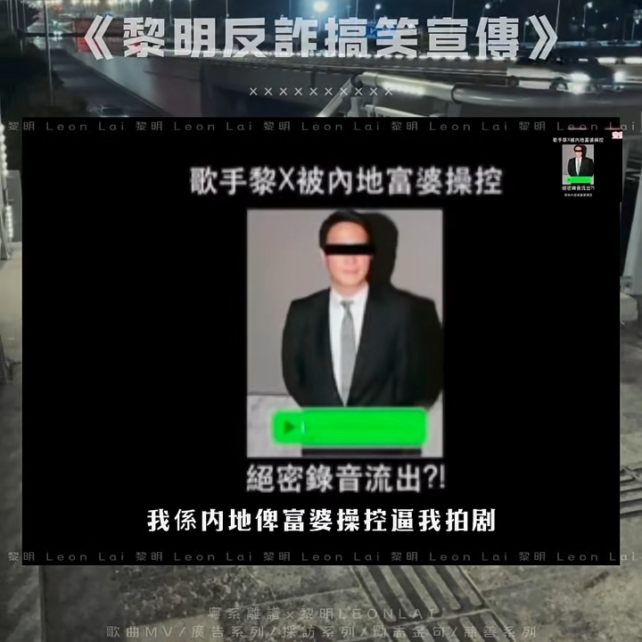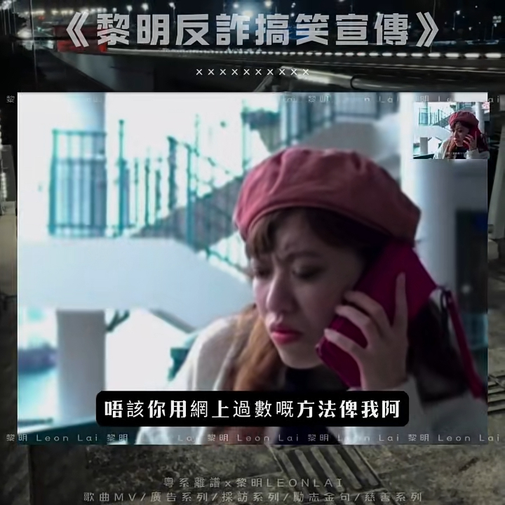 片中可見,一名女子收到“黎明”的求助錄音,男子的聲音與黎明本人非常相似,他表示:“我系黎明,我喺內地畀富婆操控,逼我拍劇,唔該你用網上過數方法畀我……當系贖金,畀我脫身返嚟香港參加金像獎?!苯勇犱浺舻呐颖硎荆骸鞍V線,你估我會幫你呀?當我傻人呀?”但她思考過后,覺得對方聲音實在太似黎明,最終都交付了“贖金”,更心心眼似乎想等待黎明多謝她,最終她被騙徒封鎖。其實這條影片是2019年黎明為“反詐騙協調中心”拍攝的反詐騙廣告,提醒市民要小心變聲詐騙電話、錄音等,以防受騙。
