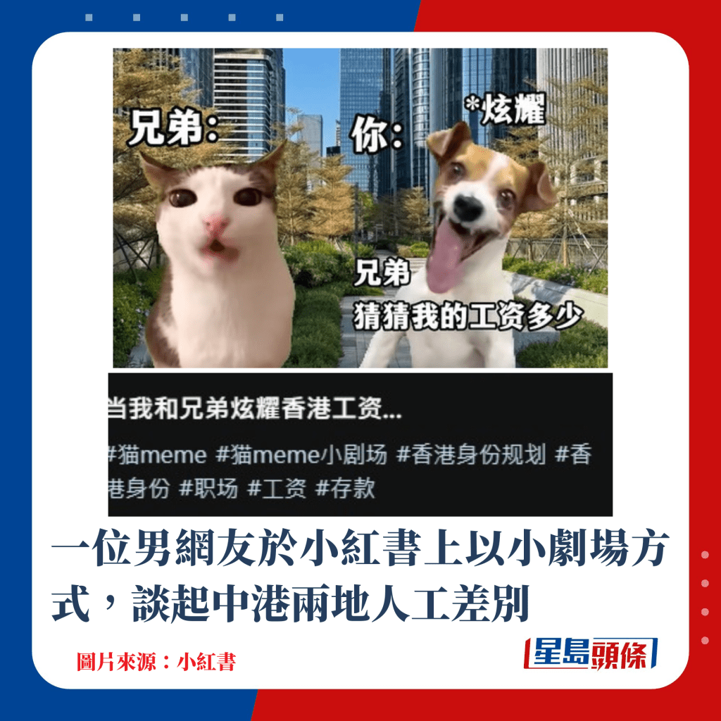 一位男網友於小紅書上以小劇場方式,談起中港兩地人工差別