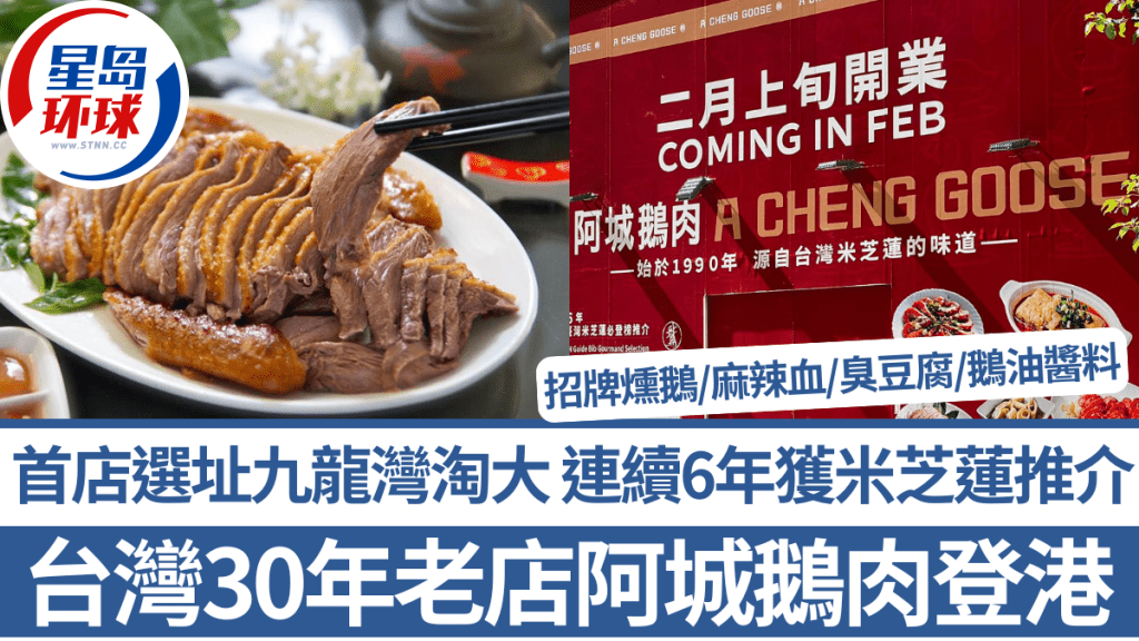 臺灣30年老店阿城鵝肉登港 首店選址九龍灣2月上旬開幕