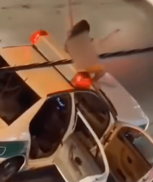 女子其后爬上警車,背著擋風玻璃坐在車頭蓋上,且張開兩腿,又高舉雙臂大喊,影片至此結束,女子其后情況不明。