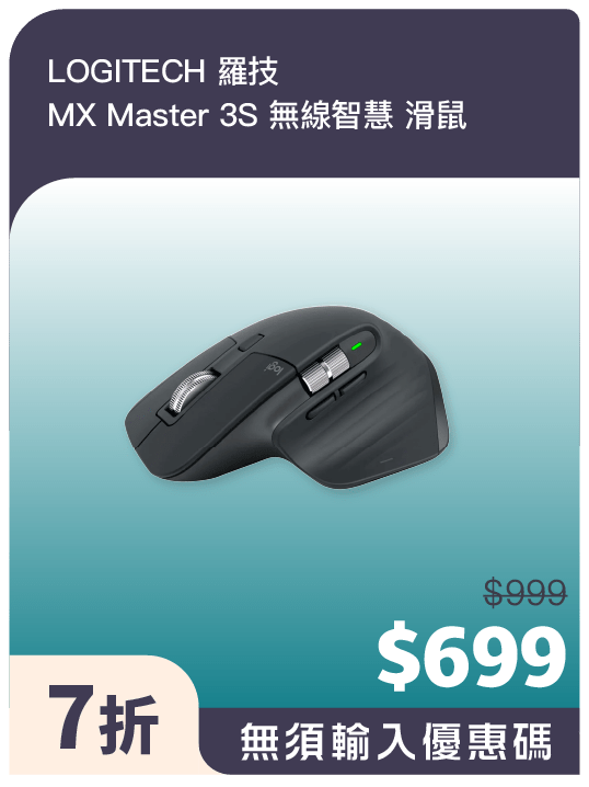 LOGITECH 羅技 MX Master 3S 無線智慧滑鼠(官方提供)