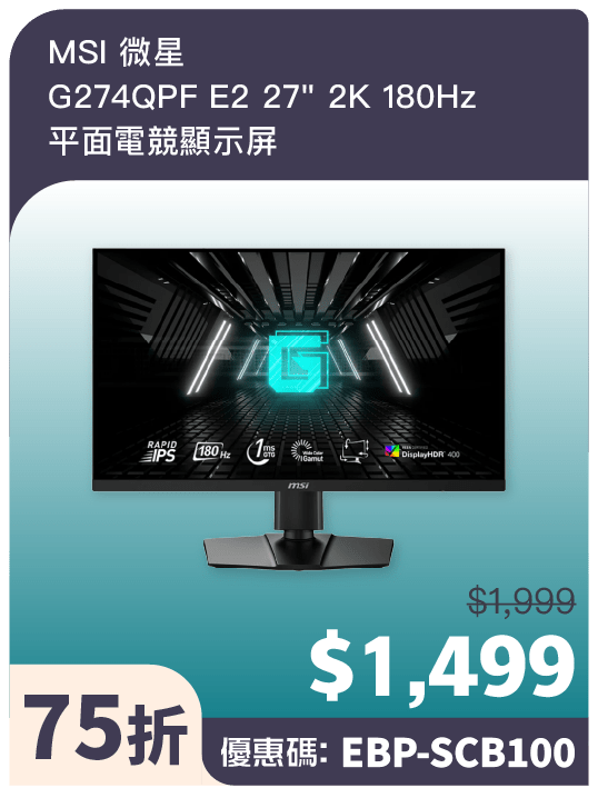 MSI 微星 G274QPF E2 27 2K 180Hz 平面電競顯示屏(官方提供)